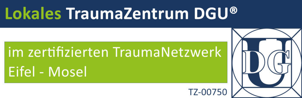 Die Fachabteilung für Orthopädie, Unfall- und Handchirurgie ist seit November 2023 als zertifiziertes Lokales TraumaZentrum der DGU® Teil eines strukturierten und flächendeckenden Verbundes von qualifizierten Kliniken in Deutschland zur Versorgung von Schwerstverletzten. Mit dem Zertifikat wird bescheinigt, dass wir als lokales TraumaZentrum die hohen Qualitätsansprüche der Schwerverletztenversorgung gemäß den Anforderungen der DGU® gewährleisten können.